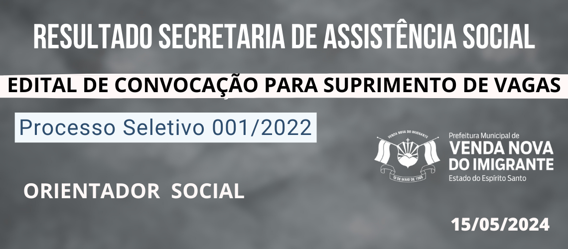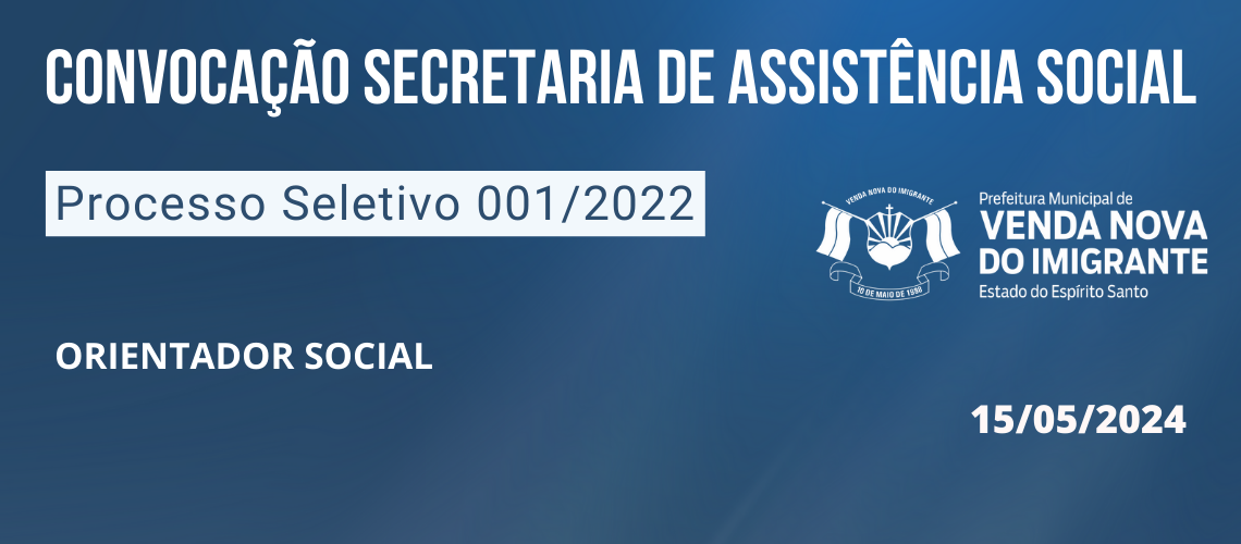 PROCESSO SELETIVO 01/2022: CONVOCAÇÃO ASSISTENCIA SOCIAL