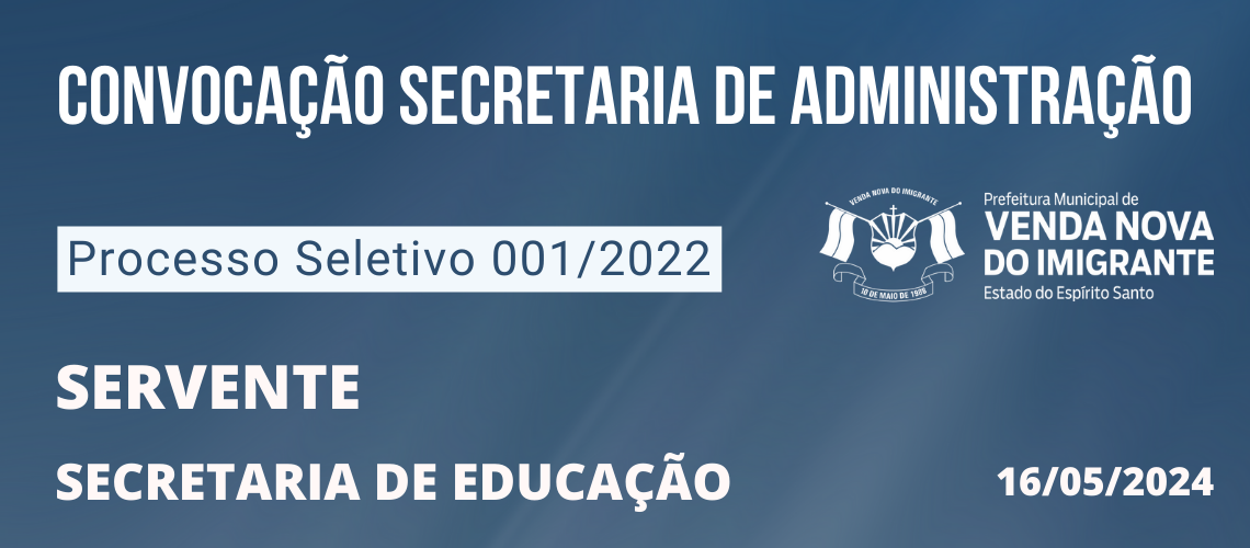PROCESSO SELETIVO 01/2022: CONVOCAÇÃO SECRETARIA DE ADMINISTRAÇÃO