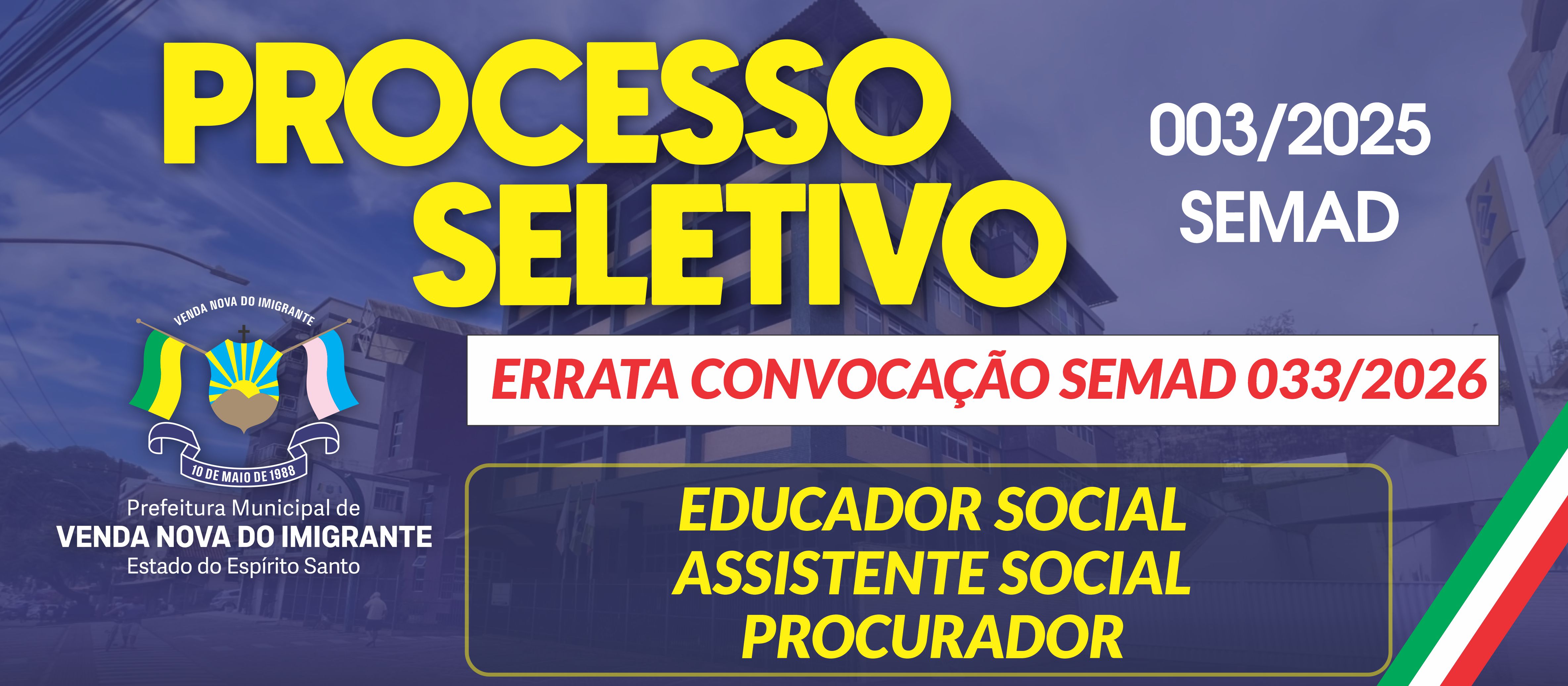 CONVOCAÇÃO SEMAD 033-2026 - ASSISTENCIA SOCIAL - EDUCADOR SOCIAL - ASSISTENTE SOCIAL - PROCURADOR - 01/04/2026