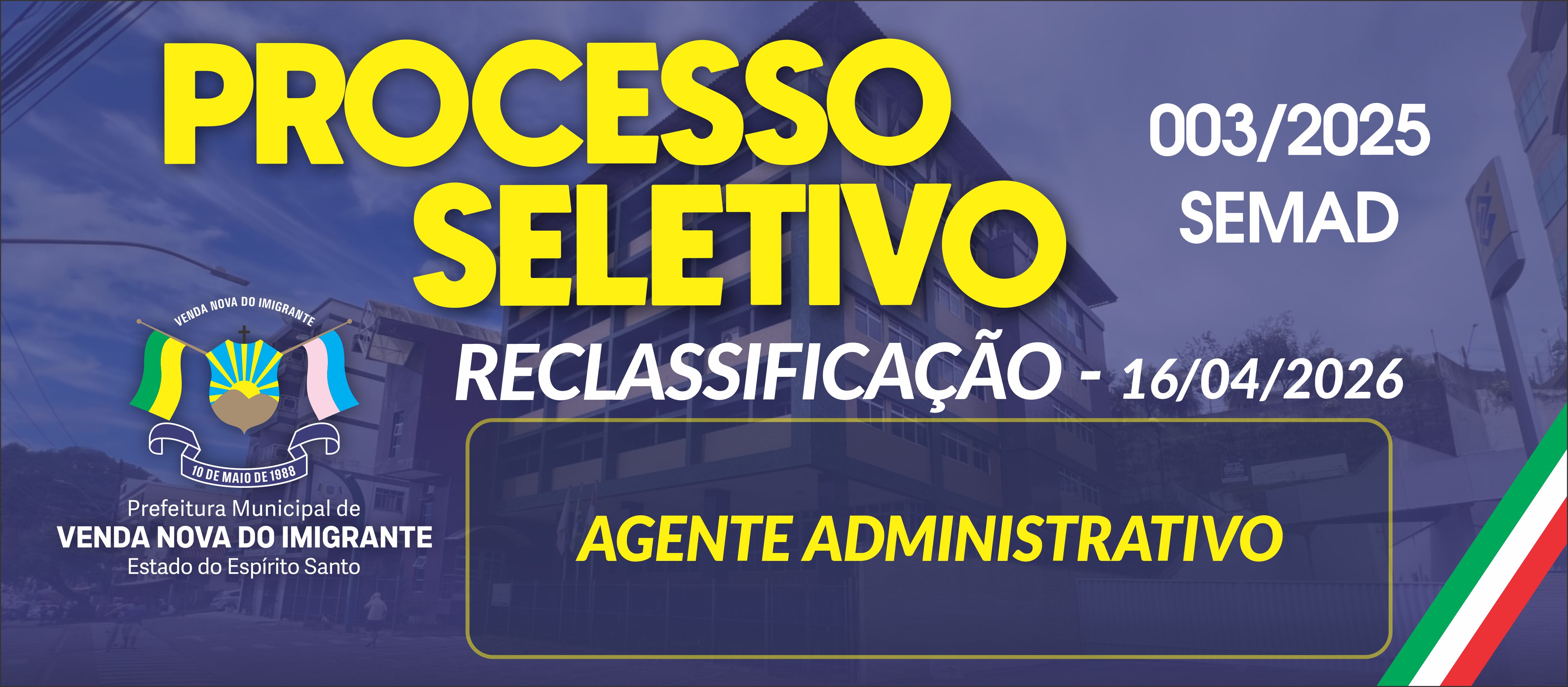 RECLASSIFICAÇÃO AGENTE ADMINISTRATIVO - PROCESSO SELETIVO SIMPLIFICADO 003/2025 - 16/04/2026