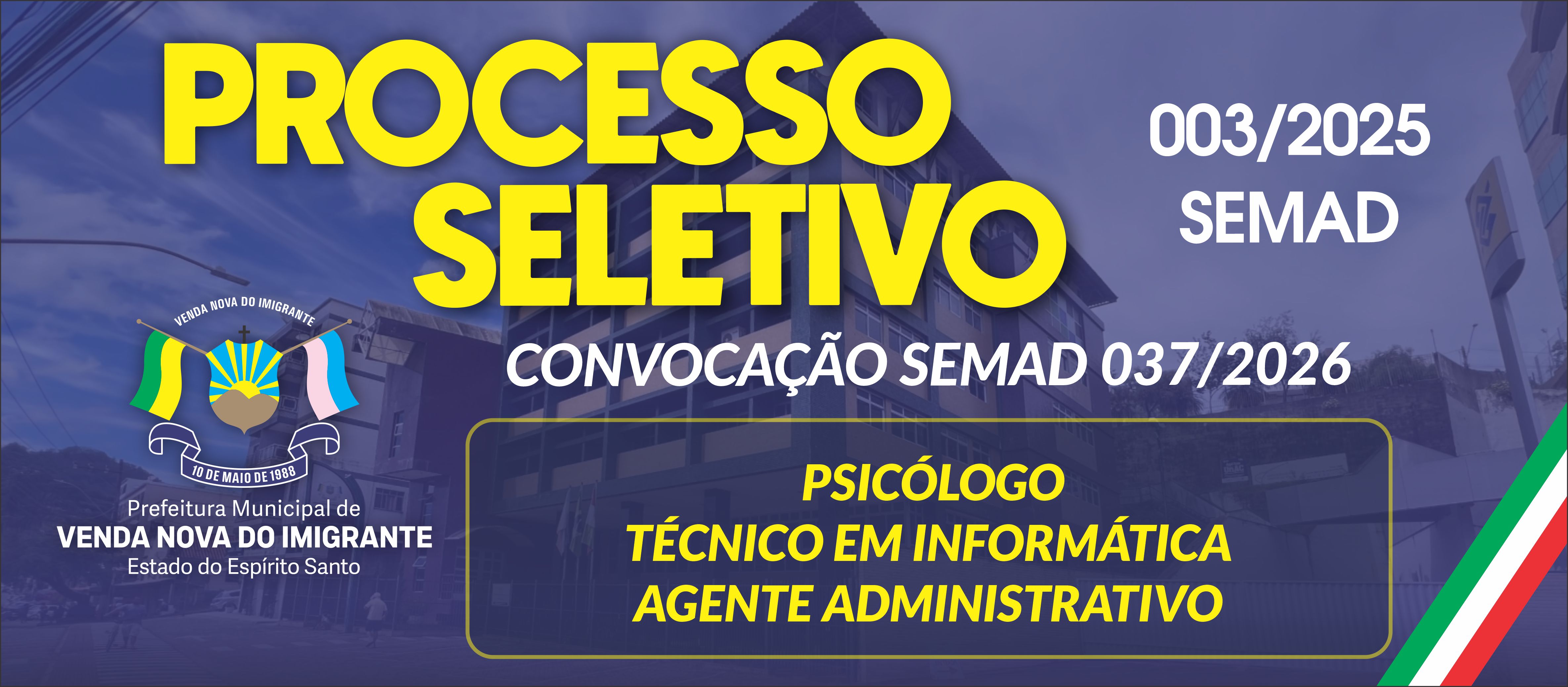 CONVOCAÇÃO SEMAD 037-2026 - SEMUS - SEMAS - PSICOLOGO - TÉCNICO EM INFORMÁTICA - AGENTE ADMINISTRATIVO - 16/04/2026