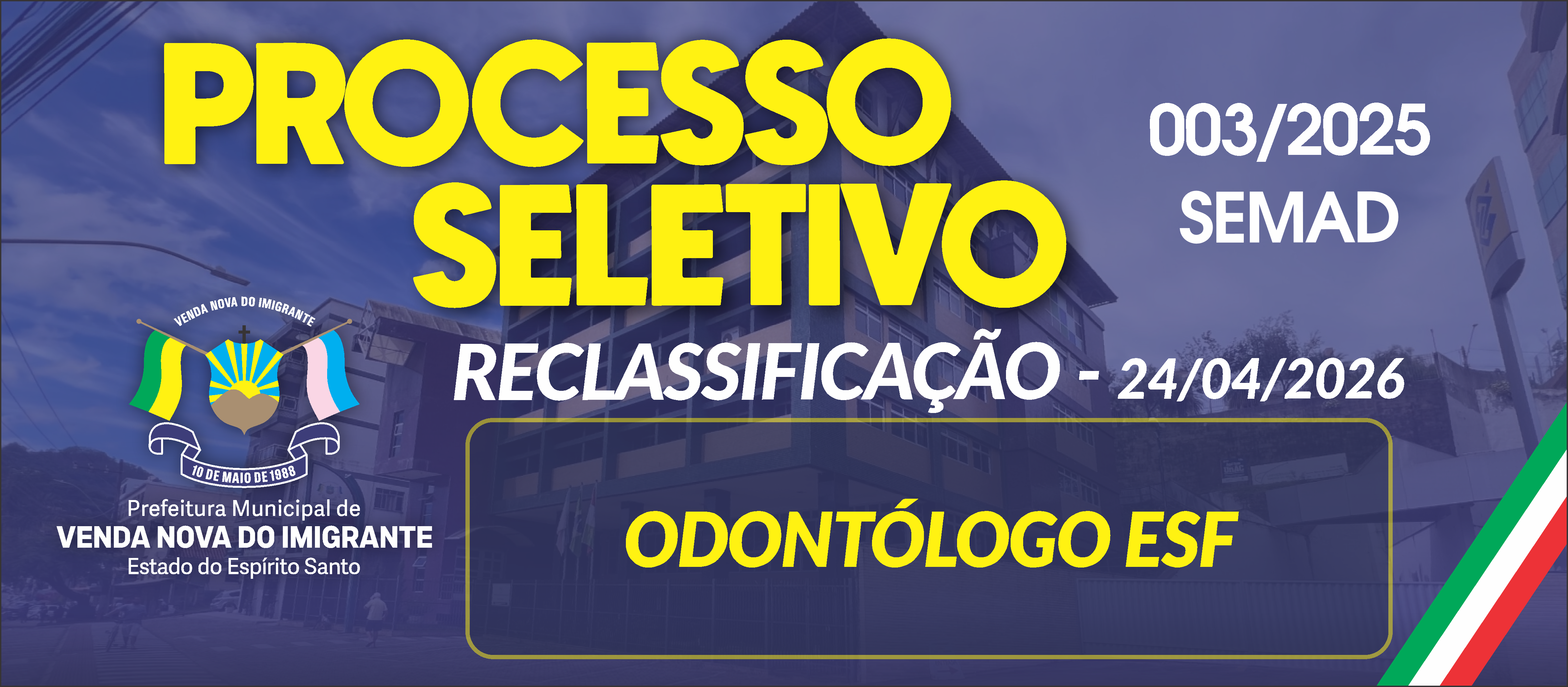 RECLASSIFICAÇÃO PROCESSO SELETIVO 003/2025 - ODONTÓLOGO ESF - 24/04/2026