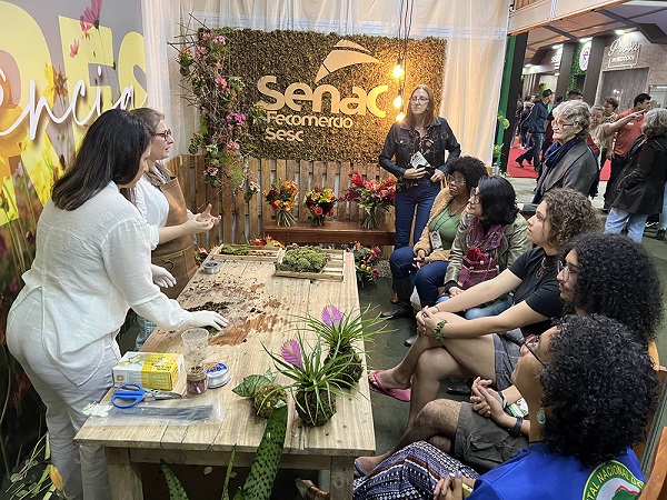 No Espaço Flores, o movimento ficou todo por conta das dezenas de opções e do curso de Kokedama, ministrado por Bianca Corona, instrutora do Senac ES nas áreas de design de interiores e paisagismo. Muitas pessoas foram ao local aprender o resgate de uma técnica japonesa que é ótima dica de decoração para apartamentos e que ganhou força com o movimento de biofilia na arquitetura. “É um coringa na decoração. A maioria das pessoas não conhecia e veio aqui aprender a fazer sua própria kokedama”.